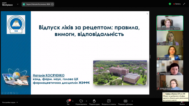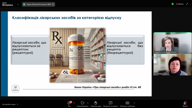 "Відпуск ліків за рецептами: правила, вимоги, відповідальність" – Наталія Косяченко, канд. фарм. наук, голова ЦК фармацевтичних наук дисциплін ЖБФФК.