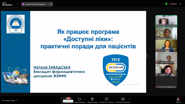 "Як працює програма "Доступні ліки": практичні поради для пацієнтів" – Наталія Завадська, викладач фармацевтичних дисциплін ЖБФФК.