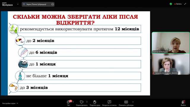 "Термін придатності лікарських засобів: чи безпечно його ігнорувати" – Тетяна Зубрицька, провізор, професіонал з клінічних досліджень, викладач вищої кваліфікаційної категорії ЖБФФК.