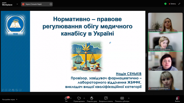 "Нормативно-правове регулювання обігу медичного канабісу в Україні" – Надія Сенків, провізор, завідувач фармацевтично-лабораторного відділення ЖБФФК.