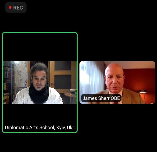 Лектором онлайн-вебінару виступив старший науковий співробітник Естонського інституту зовнішньої політики і Міжнародного центру оборони і безпеки (ICDS) у Талліні, асоційований співробітник російських та євразійських програм Чатем Хаус (Chatham House) Джеймс Шерр ОБЕ (Mr. James Sherr OBE).
