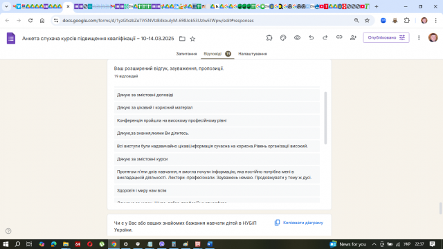Учасники підвищення кваліфікації висловили щиру вдячність науково-педагогічному колективу факультету ветеринарної медицини НУБіП України за їхню працю та знання, які вони отримали в університеті. Окремо вони подякували керівництву Національного університету біоресурсів і природокористування України за відмінно організоване навчання, що сприяло їхньому професійному розвитку та вдосконаленню педагогічної діяльності.