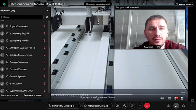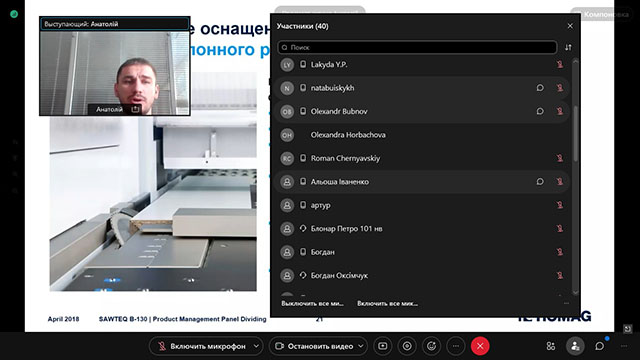 Спікером сьогодні був випускник кафедри, менеджер компанії «Маркетліс» Анатолій Сошенський. Тема його розповіді стосувалася особливостей роботи та конструкції розкрійних центрів з ЧПУ виробництва HOMAG Group – одного з світових лідерів комплексних виробничих рішень в меблевій та деревообробній промисловості.