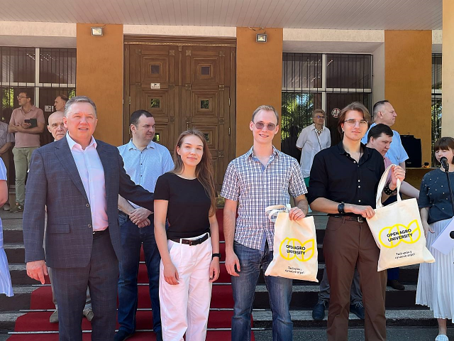Від імені стейкхолдерів випускників цієї програми привітала менеджерка проекту Open Agro University компанії «КЕРНЕЛ» Сніжана Рогачова, яка презентувала даними студентам заохочувальні подарунки від компанії та підкреслила важливість партнерства між університетом і приватним сектором для забезпечення якісної освіти для підготовки конкурентоспроможних спеціалістів.