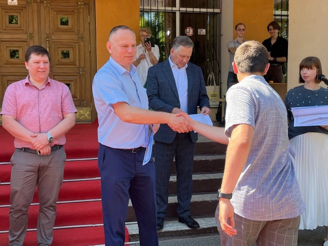 До приємної і водночас хвилюючої для кожного випускника миті - вручення дипломів долучились і завідувачі випускових кафедр Віталій Лисенко та Олександр Окушко.