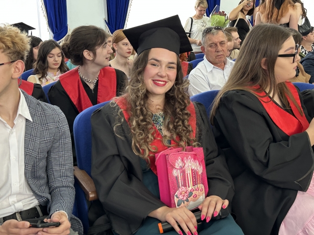 Вручення дипломів супроводжували відеосвітлини, які з’являлися на екрані та занурили випускників й викладачів у теплі спогади. Крім того, на урочистому зібранні музичний подарунок під назвою «Україна це ми» підготувала випускниця Анна ПОГРІБНА, а студент Ярослав РЯБОКОНЬ виконав музичну композицію під назвою «Моя країна».