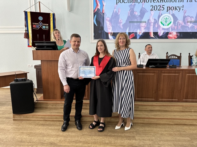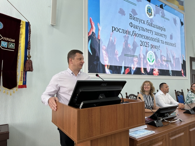 Бакалаврам спеціальності 202 «Захист та карантин рослин» дипломи вручали завідувач кафедри фітопатології ім. академіка В. Ф. Пересипкіна Дмитро ГЕНТОШ, завідувач кафедри ентомології, інтегрованого захисту та карантину рослин Микола ДОЛЯ та доцент цієї ж кафедри Леся БОНДАРЕВА.«Університет це місце, де гартується характер і формуються лідери! Ваша професійна стежина тільки починається, тож інтенсивно працюйте, розвивайтеся, шукайте нові контакти та цікаві проєкти. Будьте оберегом для себе, своїх батьків, для своєї держави. В добрий шлях!», — привітав випускників Микола Миколайович.