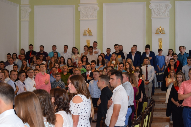 Розпочалося свято вручення дипломів звучанням державного гімну України. Далі з вітальними словами від ректора НУБіП України Станіслава Ніколаєнка до випускників звернулася т.в.о. начальника навчального відділу університету Лариса Кліх, яка відзначила, що випускники отримують дипломи бакалавра в одному з найстаріших і найпрестижніших закладів вищої освіти України. Побажала вдалого вступу в магістратуру університету і стати успішними людьми!
