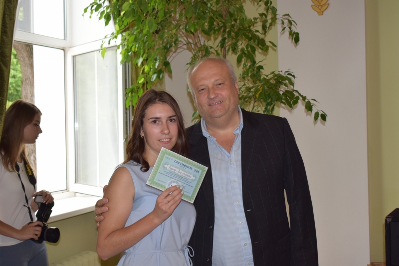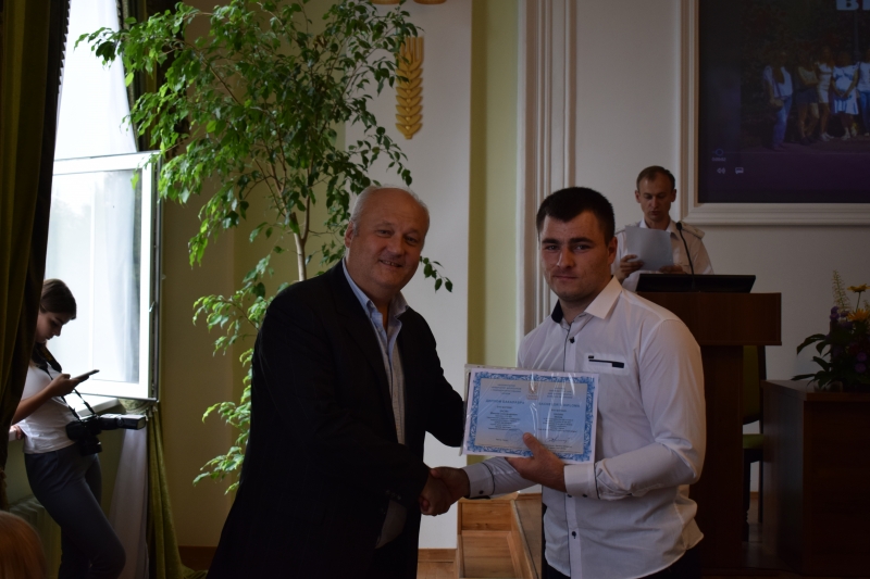 З вітаннями до випускників звернувся також почесний президент Української асоціації деревообробного обладнання Ігор Мельник, який, окрім приємних побажань випускникам, вручив грошовий сертифікат Аллі Кудояр – одній із найкращих цьогорічних випускниць серед бакалаврів технології деревообробки.