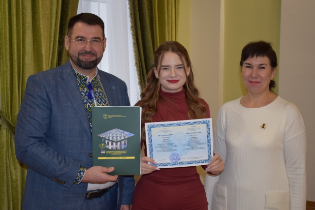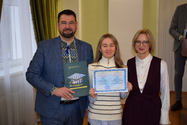 А далі для випускників настала хвилююча і, водночас, найприємніша мить – отримання дипломів магістрів. Під бурхливі оплески аудиторії Роман ВАСИЛИШИН і Олена ГЛАЗУНОВА разом із диспетчером інституту Ларисою РОМАНЦОВОЮ вручили магістрам дипломи з відзнакою.