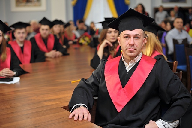 Окрім цього, магістрів привітав завідувач кафедри технології м’ясних, рибних та морепродуктів Олександр Савченко. Він сказав, що студенти мають пишатися таким новітнім та сучасним вузом та факультетом із його сучасними лабораторіями, у котрому вони вчилися протягом останніх п’яти з половиною років та побажав не зупинятися на досягнутому.