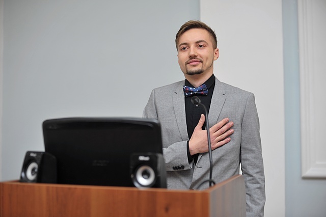До слів подяки та побажань залучилися і магістри-випусники, а саме Олександра Ціпан, яка подякувала усьому колективу факультету за співпрацю та незабутні роки в університеті, а магістрам побажала наснаги та успіхів на життєвому шляху та Назарій Ільчук, який привітав усіх зі святом, подякув викладачам за ті сили, які були вкладені у виховання майбутніх спеціалістів та побажав усім творчої наснаги у майбутньому.