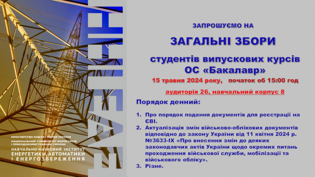 ННІ енергетики, автоматики і енергозбереження в умовах воєнного стану веде постійний діалог зі студентами. Але випускові курси вимагають посилення уваги для інформаційної підтримки подальших кроків наших студентів: вступу на наступний освітній рівень та працевлаштування.