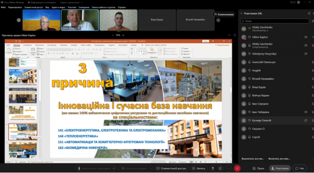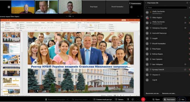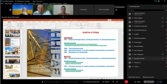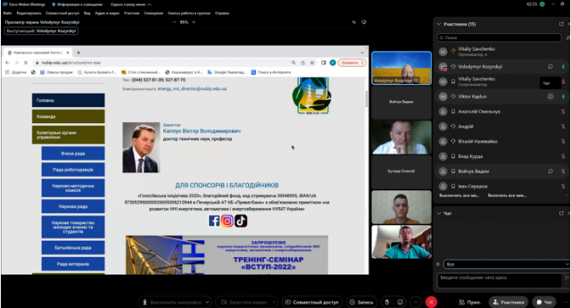 Відкрив вебінар директор ННІ енергетики, автоматики і енергозбереження Віктор Каплун. Під час свого виступу він окреслив саме ті переваги, які створюють додаткові можливості для навчання в Національному університеті біоресурсів і природокористування, презентував спеціальності, за якими ведеться підготовка фахівців ННІ енергетики, автоматики і енергозбереження, зупинився на особливостях побуту та роботі студентського самоврядування.