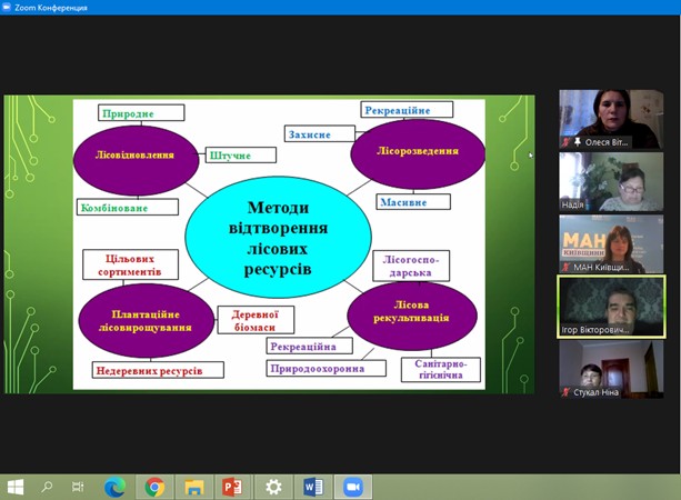 В доповіді Ігоря Іванюка «Сучасні методи лісовідновлення та лісорозведення в умовах урбанізованого середовища» прозвучали основні аспекти відтворення лісів в сучасних умовах антропогенного навантаження. Приділив увагу методам відтворення лісів та навів їх особливості. За різних методів відтворення лісів учням малої академії наук та шкільних лісництв можна проводити дослідження та писати наукові роботи на конкурс-захист. Увагу також варто приділяти дослідженню показників якості насіння деревних та кущових видів, не менш актуальними є дослідження щодо розмноження та вирощування садивного матеріалу, апробація різних за складом субстратів та мінеральних добрив.