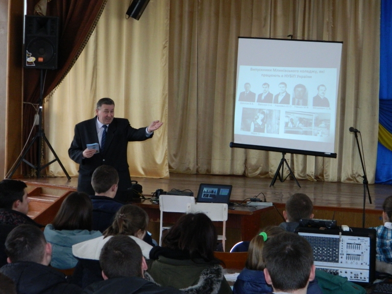 21 березня заступник декана факультету ветеринарної медицини, доцент кафедри хірургії і патофізіології ім. акад. І.О. Поваженка НУБіП України Данілов Василь Бенедиктович провів профорієнтаційну роботу у Млинівському державному технолого-економічному коледжі Рівненської області щодо вступу випускників на навчання до НУбіП України і, зокрема, на спеціальність «Ветеринарна медицина». Керівництво коледжу разом із студентами з радістю провели таку зустріч, оскільки Василь Данілов є випускником 1981 року даного закладу вищої освіти, і його фотографія розміщена у рубриці «Наша гордість» Музею коледжу.