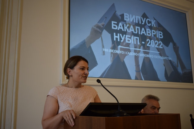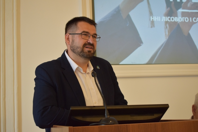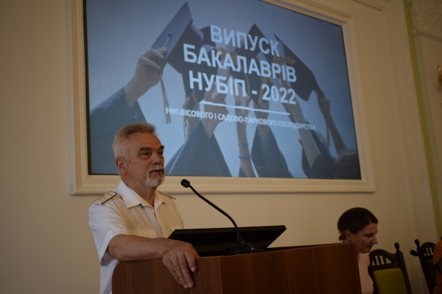Після вручення дипломів з настановчою промовою до випускників звернувся професор кафедри відтворення лісів та лісових меліорацій Віктор Маурер, який розповів про багаторічний досвід розвитку лісової галузі та надав поради щодо успішної та ефективної роботи за фахом.