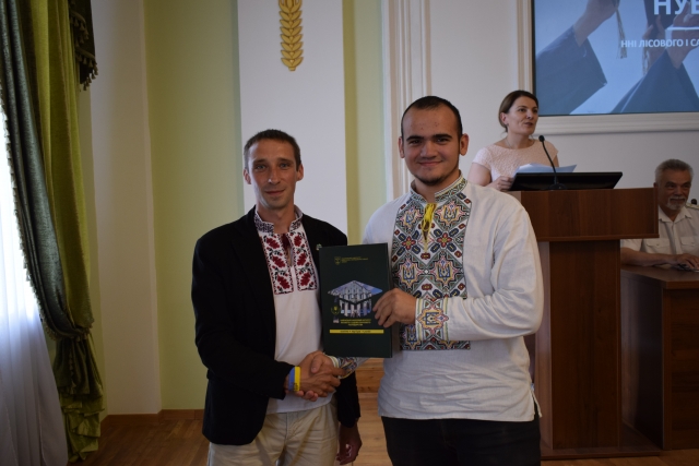 Після промов розпочалася найочікуваніша для студентів мить - вручення дипломів. Дипломи студентам спеціальності 205 "Лісове господарство" вручив директор НДІ лісівництва та декоративного садівництва Роман Василишин.