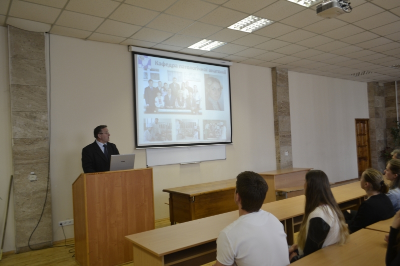 Данілов В.Б. представив презентацію про факультет, визначив основні переваги навчання в НУБіП України, ознайомив випускників коледжу із спеціальністю «Ветеринарна медицина» і особливу увагу акцентував на ринку праці майбутніх фахівців ветеринарної медицини, практичному стажуванню по обміну за кордоном. Після закінчення виступу заступника декана були задані низка запитань, які цікавили випускників-абітурієнтів, зокрема: наявність державних місць, забезпечення гуртожитками, можливість практичного стажування в зарубіжних країнах, вартість контрактної форми навчання тощо, на які були надані вичерпні відповіді.