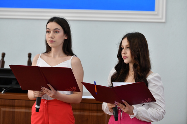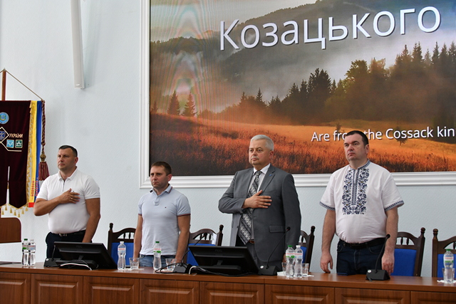 Ведучі Анастасія Фіялчук та Ганна Сахно оголосили церемонію вручення дипломів відкритою, а в залі пролунав Гімн України.