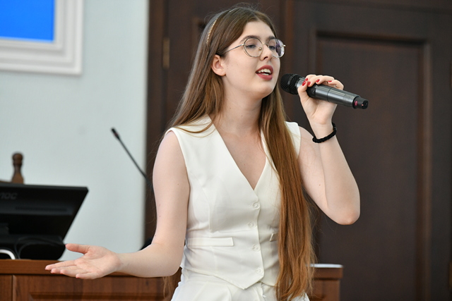 Музичне вітання від студентки першого курсу факультету Софії Сімчук стало приємною несподіванкою для всіх присутніх.