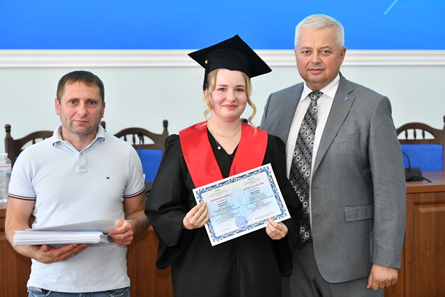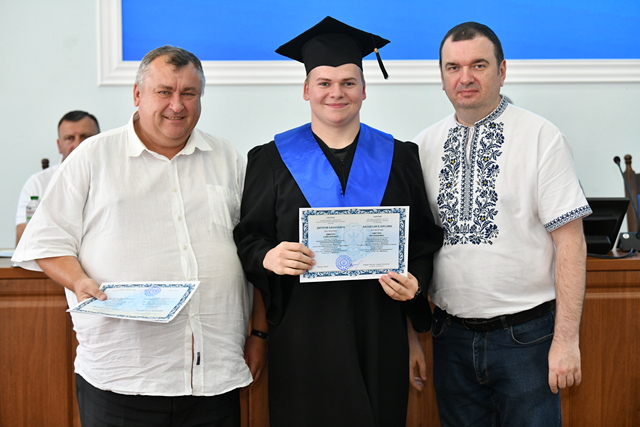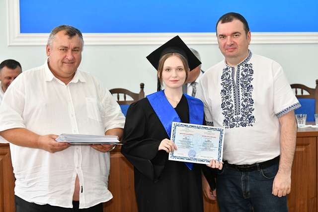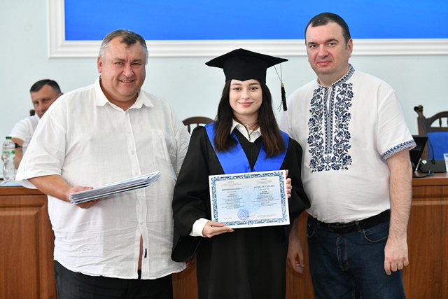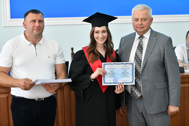 Дипломи бакалавра випускникам спеціальності 073 «Менеджмент» урочисто вручали декан факультету аграрного менеджменту Анатолій Остапчук та підприємці Богдан Зеленський і Олександр Косенюк.