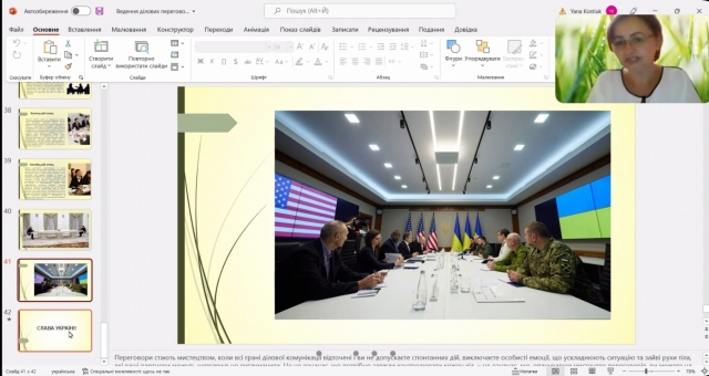 Під час лекції студенти ознайомились з функціями та основними етапами переговорів, активно включились в дискусію стосовно вибору місця для проведення переговорів, стратегій їх ведення та екологічності вибору лінії поведінки учасників процесу.