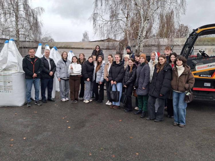 Завершальним етапом стала практична частина з використання телескопічного навантажувача. Студенти, які виявили бажання, змогли сісти за кермо під наглядом фахівців та спробувати переміщувати пакети з мінеральними добривами. Практичне виконання завдання дало можливість відчути специфіку керування навантажувачем та оцінити точність маневрування.