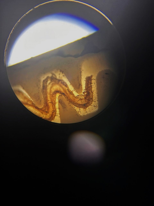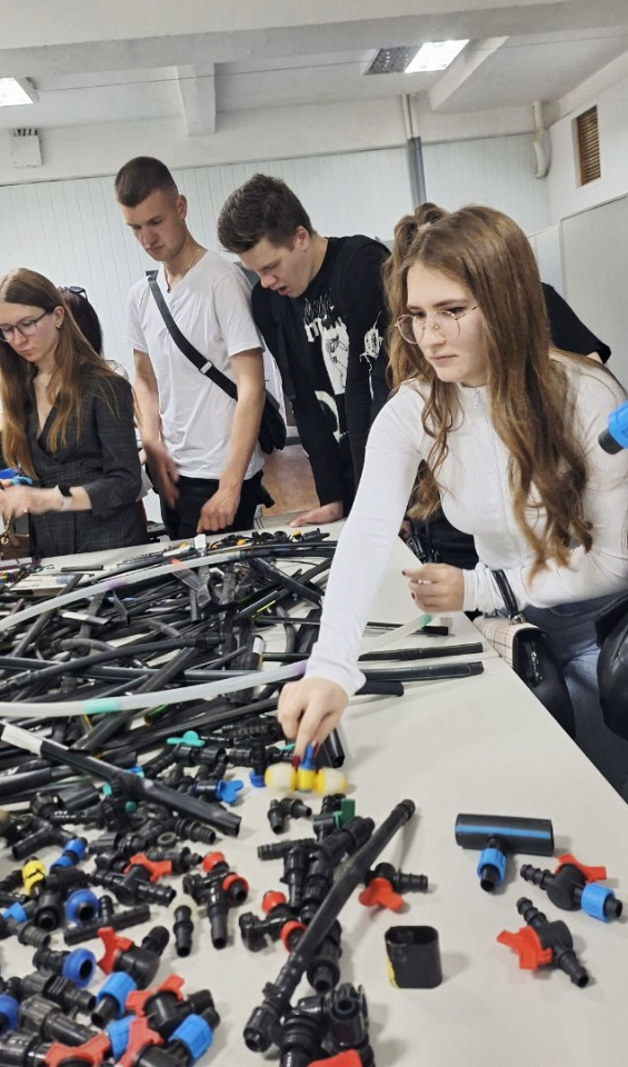 Заключна частина зустрічі була присвячена проблемам закупорювання крапельниць-водовипусків, що є серйозним викликом для практиків під час роботи з системами мікрозрошення. Науковці лабораторії систематично досліджують причини виходу з ладу крапельниць, пропонуючи споживачам варіанти профілактики та шляхи вирішення проблеми. Студентам - гуртківцям була надана можливість на короткий час також стати дослідниками та спробувати визначити природу засмічення конкретного краплинного емітера, причиною порушення роботи якого стало проникнення кореневої системи рослини всередину конструкції.