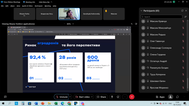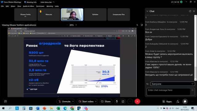 Студенти агробіологічного факультету відмітили, що Микола Черняк має дуже цінний досвід, а головне – він хоче ним ділитися, щоб послуги виконувалися якісно. До ситуації з репутацією всього напряму на ринку ставиться, як до своєї власної. За його словами: «Зараз велика проблема в тому, що є команди, які працюють на інших агрокоптерах. Вони можуть дати погані результати, що впливає на репутацію всієї галузі. Сам коптер від DJI хороший, але потрібно навчитися не лише ним керувати, а й напрацювати досвід на різних культурах та рельєфах. Ми зробили це. Тепер знаємо, де можна вносити, де не варто, а де треба збільшити норму. В цьому наша основна особливість, і цим ми кращі за інших». Все буде Україна! Оксана Тонха, декан агробіологічного факультету Ірина Шпакович, асистент кафедри генетики, селекції і насінництва ім. проф. М.О. Зеленського