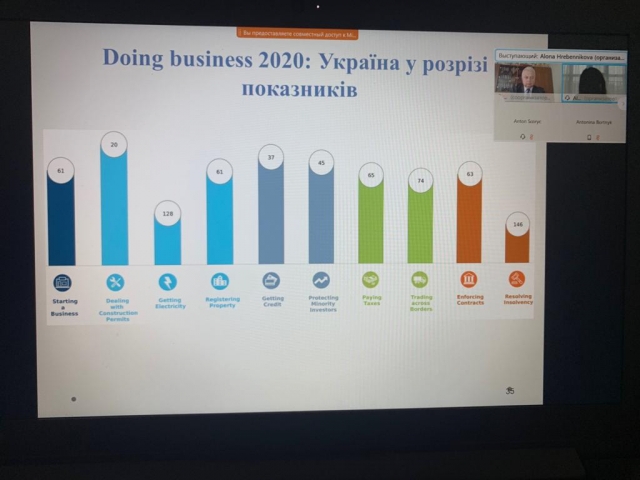 Україна зайняла 64-сходинку в рейтингу інвестиційної привабливості Doing business-2020, покращивши позицію минулого року на 7 пунктів. У 2019 році Україна займала 71 місце в рейтингу Doing Business. Підвищення рівня інвестиційної привабливості відбулося за рахунок: отримання дозволів на будівництво, підключення до електромереж, реєстрації власності, захисту міноритарних інвесторів, міжнародній торгівлі, отриманню кредитів, забезпеченню виконання контрактів, вирішенню питань неплатоспроможності. Проте, згідно зі звітом ВЕФ Global Risks report 2020 зростуть такі ризики як, економічна конфронтація, внутрішньополітична поляризація (популізм для України), екстремальні погодні явища (спека), знищення природних ресурсних екосистем, кібератаки на сферу інфраструктури.