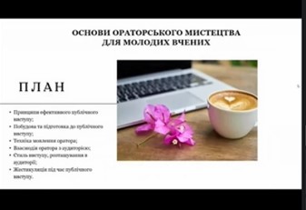 Теоретична частина майстер-класу були спрямована на розкриття теми «Основи ораторського мистецтва для молодих вчених».