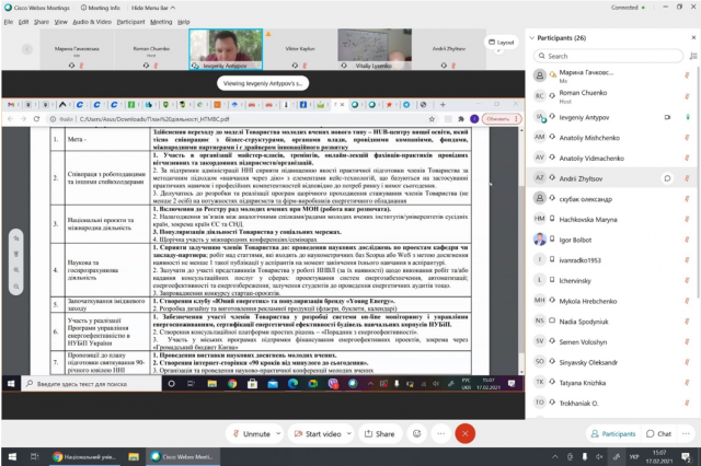 Одним з питань порядку денного був розгляд плану діяльності Товариства молодих вчених та студентів на поточний навчальний рік, з інформацією про який виступив його голова Євген Антипов. Самоврядна організація молодих науковців озвучила досить амбітні плани.