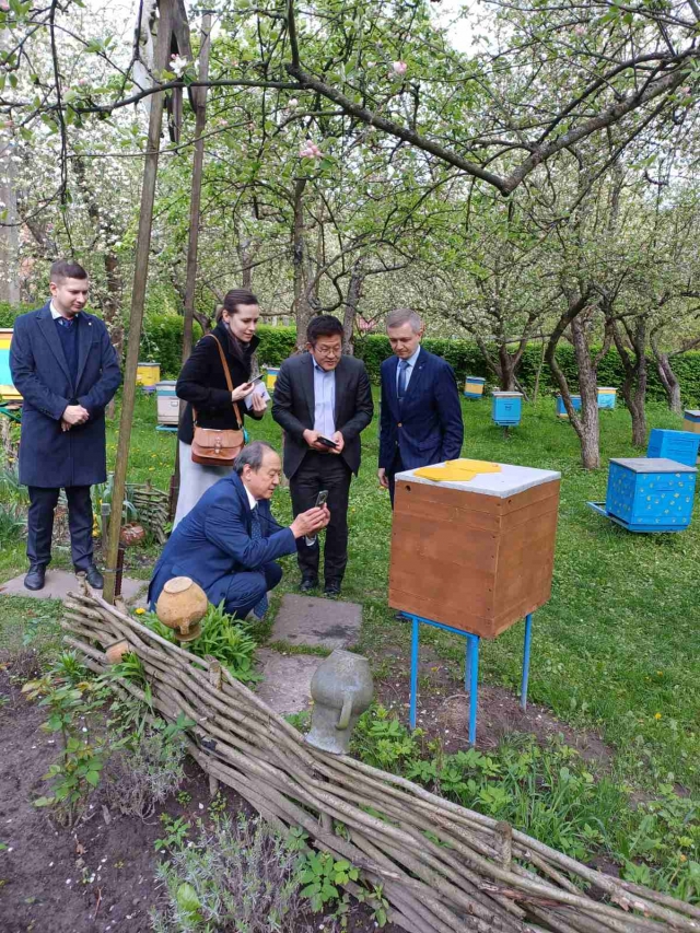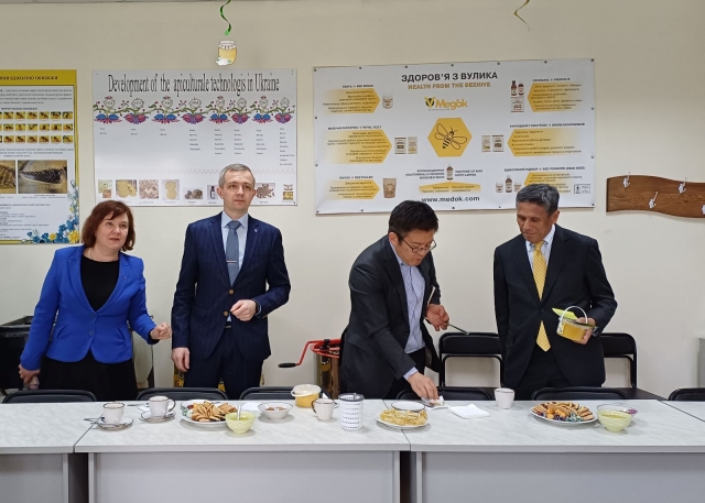 Другою зупинкою стала Голосіївська навчально-дослідна пасіка факультету тваринництва та водних біоресурсів, де у супроводі декана факультету Руслана Кононенка та завідувача кафедри бджільництва Миколи Повознікова високоповажні гості ознайомилися з розвитком та перспективами бджільництва в Україні, і інноваційними лабораторіями факультету.
