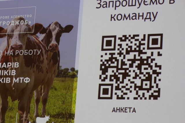 Пані Олена зупиналась на корпоративних цінностях та перевагах співпраці з компанією, а також довела до учасників актуальні вакансії на сучасних молочно-товарних фермах АВМ. Наприкінці свого виступу Олена Кукуруза провела анкетування учасників «Ярмарки вакансій».
