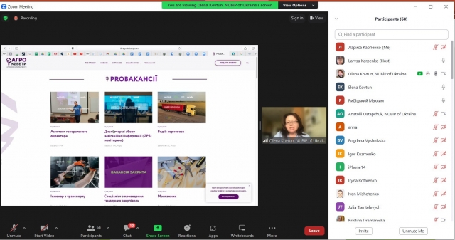 Виступаючі надали контактну інформацію та перелік відкритих вакансій, що буде розміщено на сторінці факультету аграрного менеджменту сайту НУБіП України у вкладці "Працевлаштування".