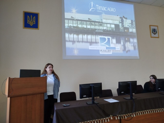 Розпочав захід декан агробіологічного факультету Віталій Коваленко зі слів привітання всіх учасників, відзначив важливість взаємодії між наукою, освітою та бізнесом для розвитку аграрного сектору країни. Першою виступила Марія Черевко, керівник продакт-менеджерів компанії Тімак Агро Україна, яка розповіла про історію компанії та її провідні позиції на ринку агрохімії.