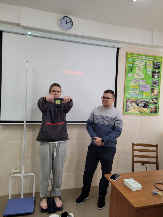Лікар-дієтолог Галина Незговорова занурила школярів у світ нутриціології здорового харчування, а доцент Микола Ніколаєнко провів майстер-клас з вимірювання зросту, ваги та розрахунку індесу маси тіла.