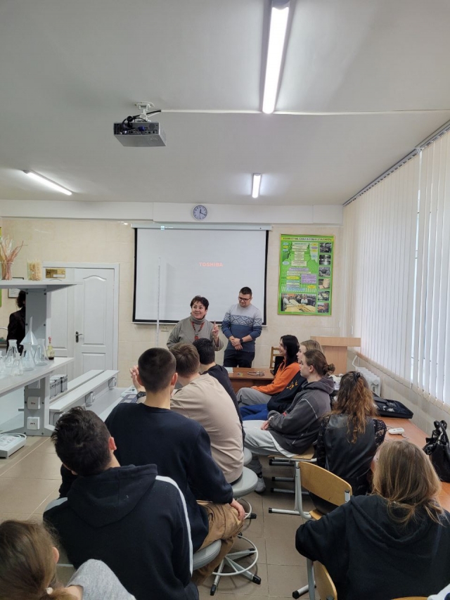 Завідувач кафедри процесів і обладнання переробки продукції АПК Володимир Василів надав інформацію у вигляді презентації про умови вступу на навчання, перелік документів, які необхідно подавати для вступу в університет на наш факультет, про різноманітні культурні та просвітницькі заходи та дозвілля студентів. Також розповів про проведення занять у віртуальному просторі в умовах карантину та війні.