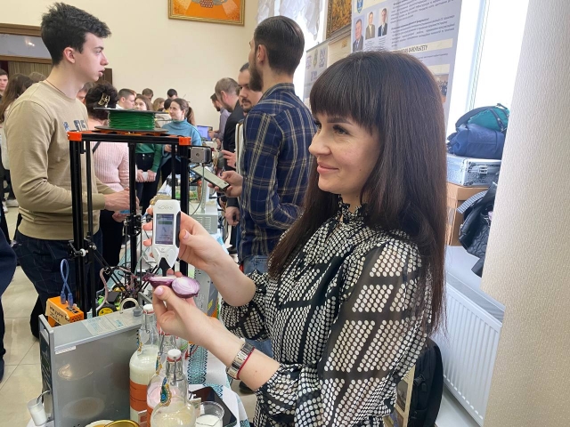 В.о. завідувача кафедри технології мꞌясних, рибних та морепродуктів Наталія Голембовська та доцент Олександр Савченко продемонстрували потужність лабораторій факультету, де студенти на високому рівні можуть проводити не лише заняття, навчаючись на бакалавра, але й виконувати свої наукові роботи, наукові дослідження, навчаючись в магістратурі, які неможливо провести в жодному університеті нашої країни.