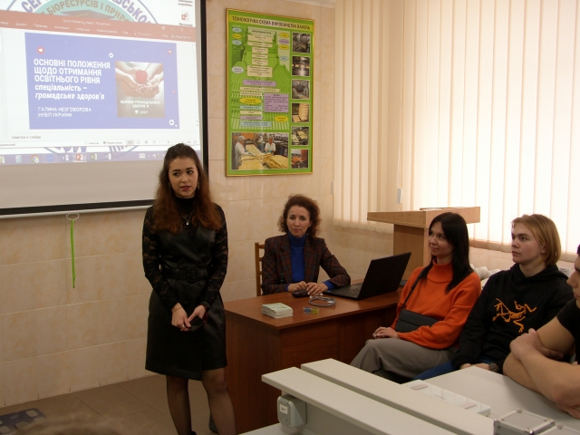 Лариса Вацлавівна, доповнила інформацію про вступ, вибір спеціальностей, про великі можливості навчання на факультеті, про можливість школярів взяти участь у підготовчих курсах до ЗНО та олімпіаді, що дає можливість отримати додаткові 10 й 20 балів, про можливість здобути 2 спеціальності одночасно, навчаючись на стаціонарі і заочно, про можливість отримати європейський диплом в університетах Литви, Франції чи Німеччини відповідно до європейських програм обміну студентами, про можливість набратися фахових знань від потужного професорсько-викладацького складу факультету в сучасних аудиторіях, науково-навчальних лабораторіях, фундаментальній бібліотеці, про нову спеціальність 229 «Громадське здоров’я», про навчання за новою освітньою програмою «Нутриціологія», про майбутнє працевлаштування після закінчення навчання за даними спеціальностями, і викликала багато запитань у присутніх.