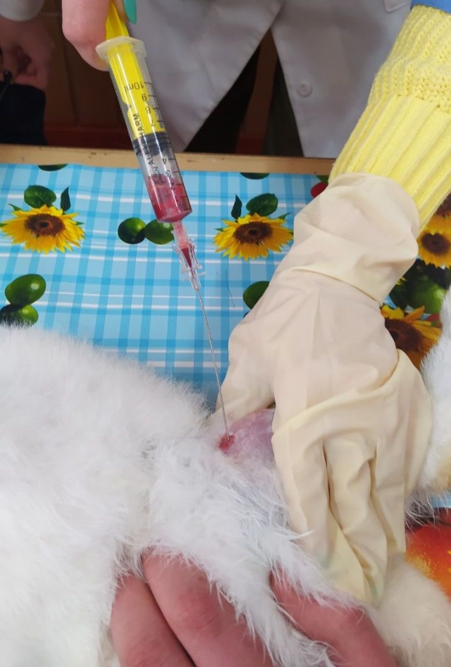Оскільки отримані показники переферичної крові не завжди можуть відповісти на низку запитань стосовно механізмів кровотворення, патогенезу захворювань, характеру і ступеню порушень функції кісткового мозку при захворюваннях різної етіології, 28 жовтня 2022 року студентами-гуртківцями було відпрацьовано методику відбору кісткового мозку у кроля шляхом пункції великогомілкової кістки кроля.