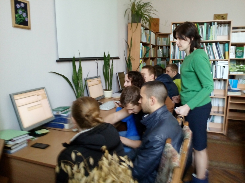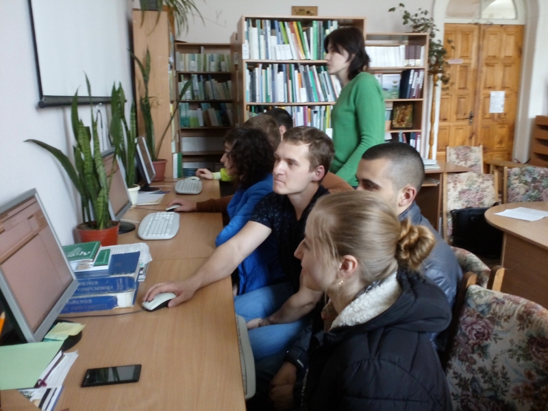 Окрему увагу студентів було зосереджено на електронних ресурсах наукової бібліотеки на сайті НУБіП України. Потрібно відмітити, що електронні ресурси включають електронні каталоги й електронну бібліотеку, є безкоштовними і пошук інформації можна робити як за темою магістерської роботи, так і за автором чи рубрикою. Всі студенти навіть спробували це зробити. Також було зазначено, що перелік нових надходжень літератури можна знайти в електронному каталозі наукової бібліотеки.
