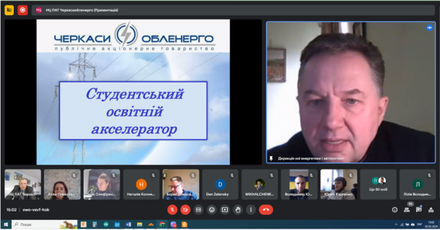 У відповідності до протокольного рішення ради Кластеру цифрової енергетики від 10 жовтня 2023 року, за підтримки голови правління ПАТ «Черкасиобленерго» Олега Самчука відбувся третій презентаційний вебінар фахового освітнього акселератора «Енергетична безпека в умовах війни», який розглянув проблеми забезпечення професійної підготовки в умовах виробництва.