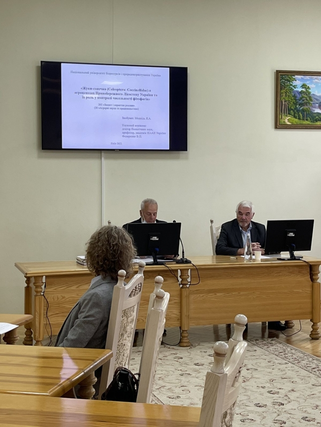 Разова спеціалізована вчена рада ДФ 26.004.011 прилюдно розглянула дисертацію Медвідь Яни Андріївни на тему: «Жуки-сонечка (Coleoptera: Coccinellidae) в агроценозах Правобережного Лісостепу України та їх роль у контролі чисельності фітофагів».