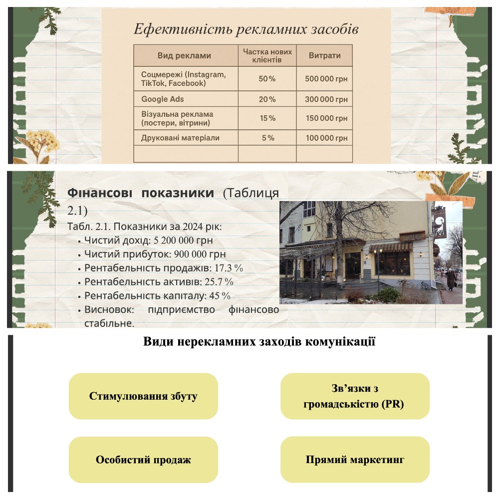 - Софії Шаповалової — «Оцінка конкурентних позицій підприємства на ринку»;