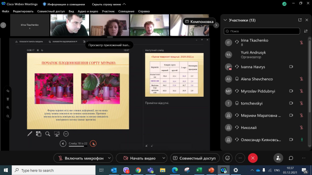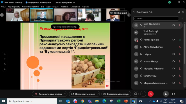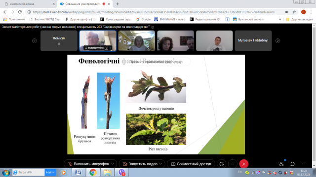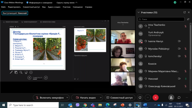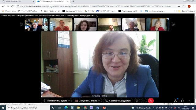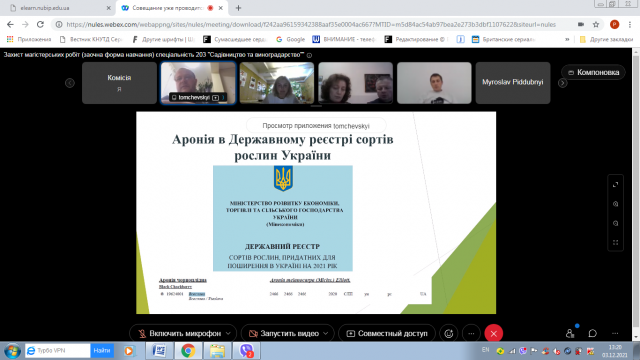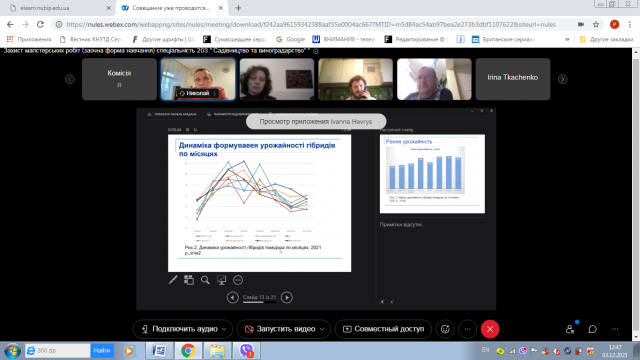 3 грудня 2021 року відповідно до графіку відбулася підсумкова атестація випускників заочної форми навчання освітньо-професійної програми підготовки фахівців ОС «Магістр» спеціальності 203 «Садівництво та виноградарство». Захист проводився у дистанційному on-line режимі з використанням платформи Cisco Webex Meetings.