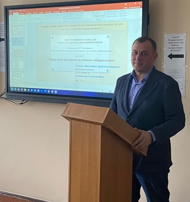 З вітальним словом до присутніх звернулася заступник декана факультету аграрного менеджменту Лариса Федорівна Карпенко, яка зачитала наказ про призначення Екзаменаційної комісії, також побажала присутнім здобувачам вищої освіти успішного захисту, а екзаменаційній комісії – плідної та цікавої роботи.