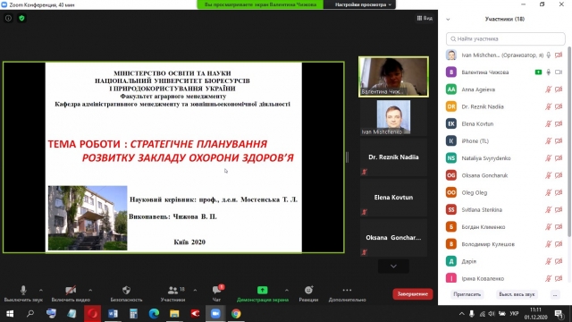 1 грудня 2020 року на виконання наказу ректора №1070 «З» розпочала роботу екзаменаційна комісія, призначена проведення підсумкової атестації магістрів (захисту магістерських робіт) освітнього ступеня «Магістр» спеціальності 073 «Менеджмент» освітньої програми «Адміністративний менеджмент» (спеціалізацій «Управління закладами охорони здоров’я» та «Адміністративний менеджмент») заочної форми навчання, факультету аграрного менеджменту.