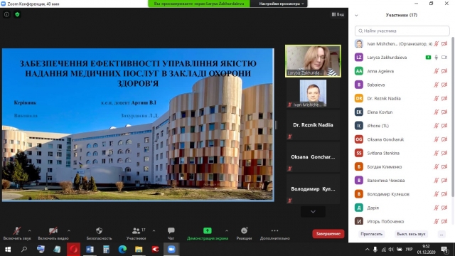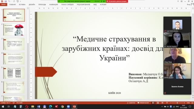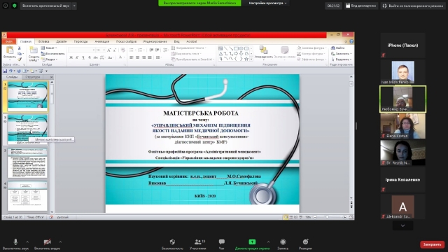 Випускники представили результати виконання робіт у підготовлених доповідях і презентаціях. Темами магістерських робіт випускники обрали: формування кадрового потенціалу підприємства; управлінський механізм підвищення якості надання медичної допомоги; організація системи управління на підприємстві та заходи щодо підвищення її ефективності; управління конкурентною стратегією підприємства; роль системи охорони здоров’я у забезпеченні сталого розвитку України; медичне страхування в зарубіжних країнах: досвід для України; удосконалення системи управління якістю молокопереробного підприємства; управління інвестиційною діяльністю підприємства; управління конфліктами в закладі охорони здоров’я; організація управлінського контролю на підприємстві.